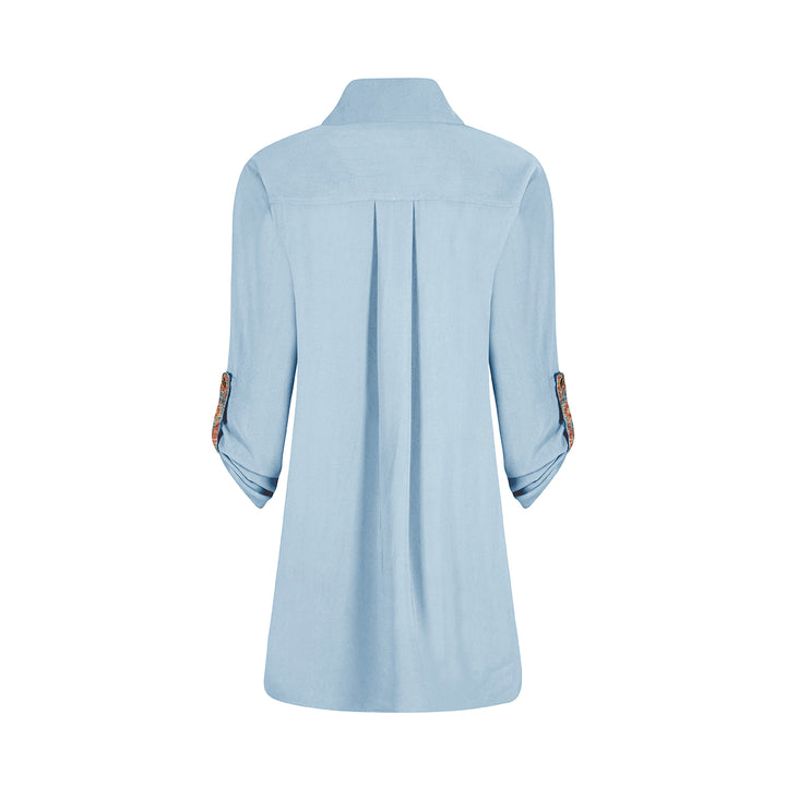 El corte recto aporta fluidez y movimiento, mientras los botones en acabado natural equilibran sobriedad y modernidad. Una pieza que trasciende lo esencial, pensada para acompañar el ritmo del día y el carácter de cada viaje.