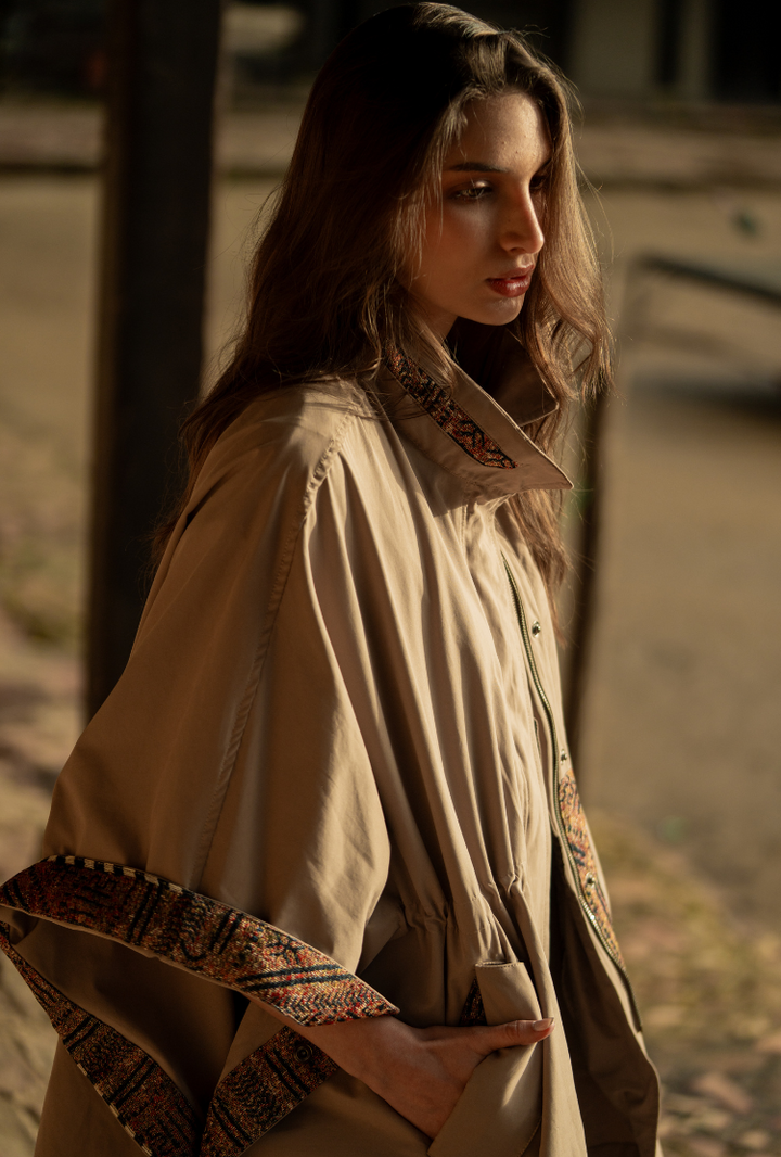 Nuestra capa con broches laterales ajustables crean una silueta elegante y favorecedora. Realzada por delicados detalles de telar, ofrece el equilibrio perfecto entre un diseño minimalista y acentos impactantes. Es una pieza versátil para superponer, esencial para la mujer que busca una sofisticación sin esfuerzo con un toque moderno.