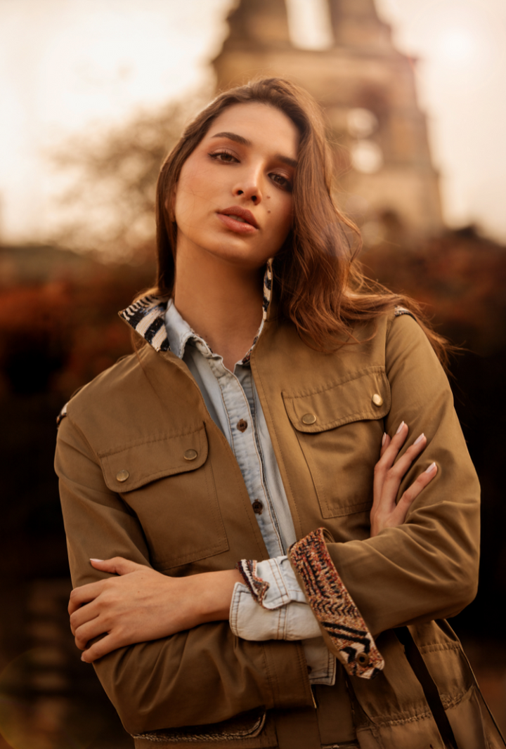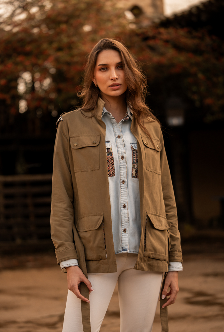 Esta chaqueta safari redefine la sofisticación sin esfuerzo. Con una silueta entallada y solapas de muesca, combina elegancia y funcionalidad con bolsillos de inspiración utilitaria. Perfecta para superponer sobre un conjunto de día o para ocasiones de noche, ofrece una interpretación refinada de la prenda clásica de aventura: ideal para la mujer que busca estilo y sustancia en cada look.