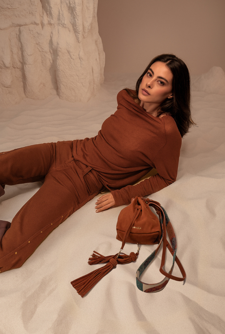 La bucket bag se redefine en clave compacta y femenina. La silueta fluida combina suavidad y estructura con un cierre ajustable y correa regulable para un uso dinámico.