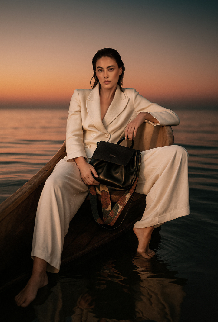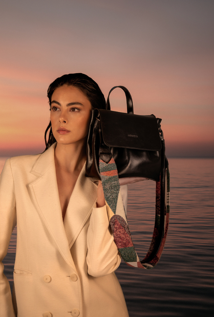 The standout: Strap removible en el telar AMÉZQUITA, una configuración de más de mil hilos que se cruzan entre urdimbre y trama. En ese entramado, los códigos de la colección cobran forma, inspirados en los cuatro elementos de la naturaleza. El resultado: una pieza funcional por definición y statement por elección.