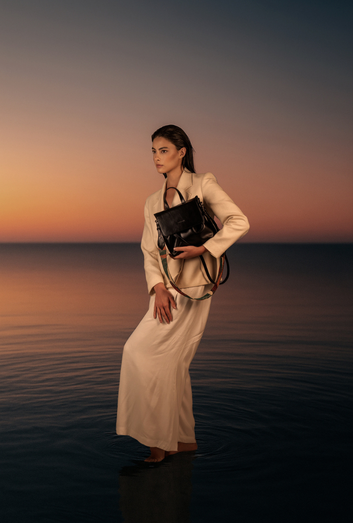 Bolso mediano que encuentra el balance entre ligereza y estructura en un formato versátil para el día a día. El cuerpo flexible se adapta con facilidad, mientras la tapa en cuero aporta un contraste pulido. El interior resguarda lo esencial sin perder elegancia.
