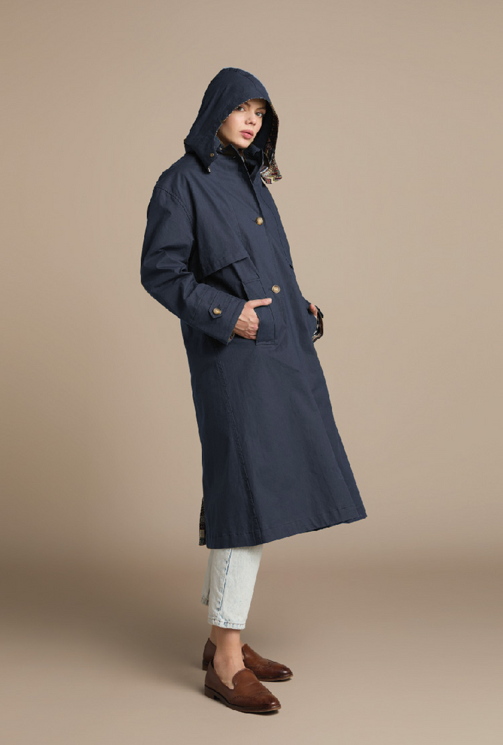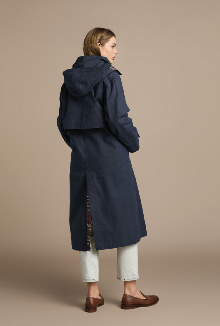Eleva tu closet con este trench coat de corte oversize y largo, confeccionado en una sofisticada tela 100% algodón. Diseñado para la mujer moderna, esta pieza combina funcionalidad y estilo. Su silueta clásica desprende una elegancia discreta, mientras que su construcción resistente a las inclemencias lo convierte en el compañero ideal para la ciudad o las escapadas alrededor del mundo. Un imprescindible para la viajera con estilo, que busca versatilidad sin sacrificar elegancia.